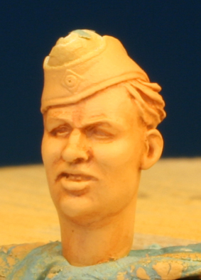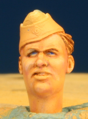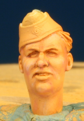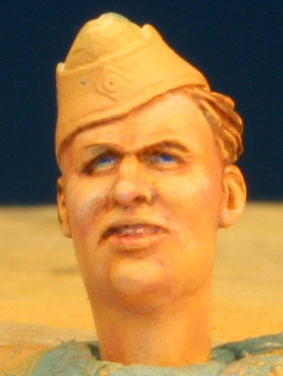目玉をVAブルーで、塗装。目の周辺、唇両端、耳髪の毛等の最暗部にVA983フラットアースで極細ラインを入れる。