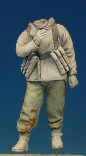 左:サーフェイサーの後、タミヤアクリル ホワイト、次にT(タミヤ)フラットフレッシュをエアブラシ塗装。