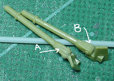 お次はアンテナの基部。Bがキットのままで、Aがいじった後です。本来