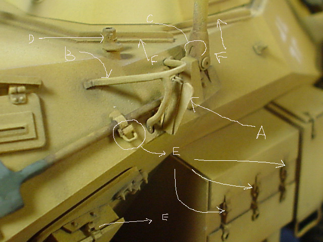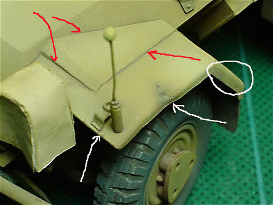 赤い丸の部分には乗員のブーツとうによる塗装の”はげ”を再現。ピンセットで
