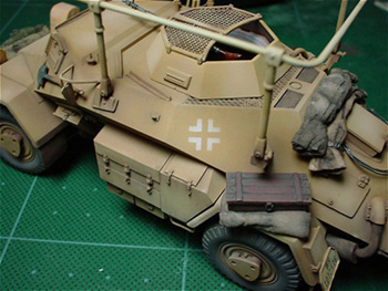 先ず始めにサーフェイサーを吹きつけます。この際自分はあまり濃くぬりません。金属を使用した部分には サーフェイサーがしっかり付着している方が良いと思いますが、その他の部分に関しては結構アバウトです。ちなみにこの作業、 晴れた日に外 で行った方が無難です。匂いが凄いのとあちこちに容赦無く飛び散りますから。外で行う事が基本です。 ダーク イエロー の基本塗装に入る前に、 車体下部を中心に影の出来そうな場所を中心にレッドブラウンを吹きつけます。 こうするといい具合に”ムラ” が出来ます。 自分の場合はこのレッドブラウンを汚れの一部の様にも使っているため、ダーク イエローの オバー スプレーは車体下部に関してはあまり施していません。車体上位部は一応一通りレッドブラウンが隠れる程度には吹いています。 |